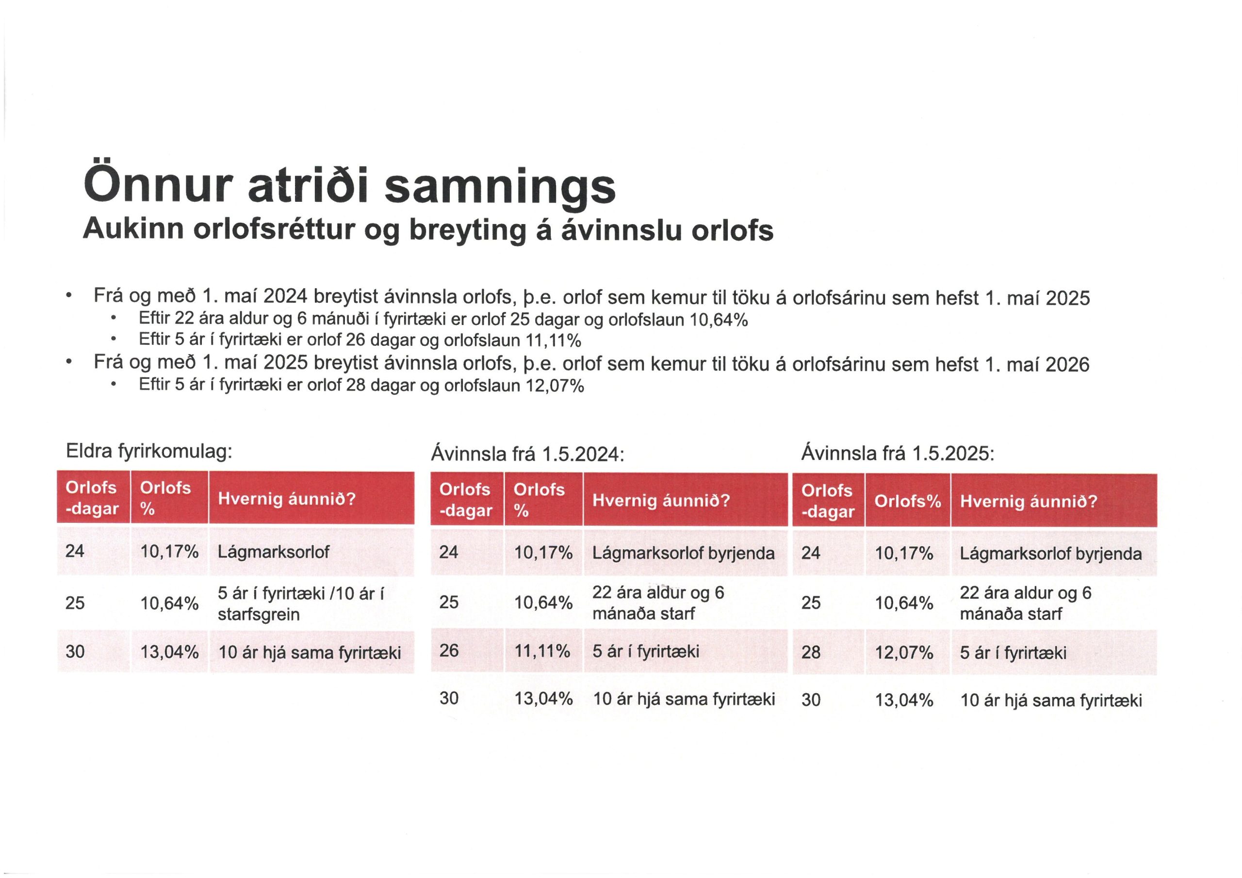 Vekjum athygli á að orlofsrétturinn breyttist frá 1. maí 2024 og svo aftur 1. maí í vor á almenna markaðnum.